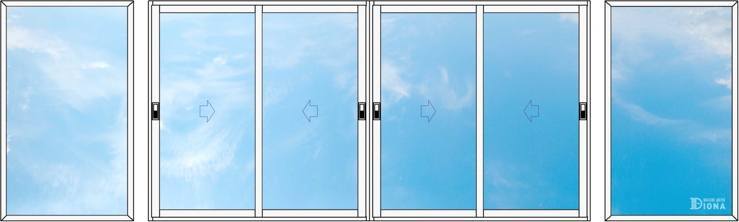 Конструкция: алюминиевый раздвижной профиль "PROVEDAL" ("Проведал")