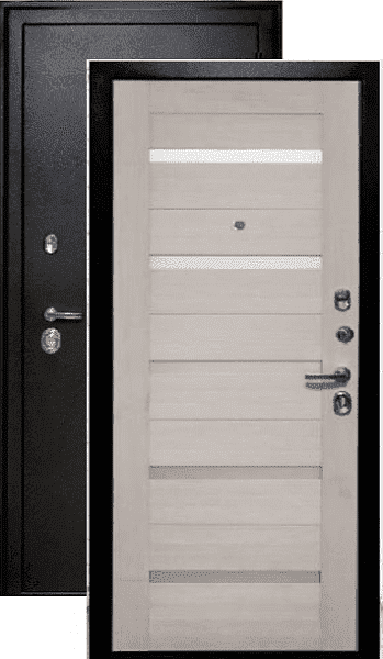 Внутренняя отделка: царговая МДФ-панель 16 мм, вставки из стекла, цвет панели: лиственница беленая