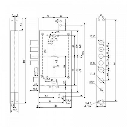 | Вылет ригелей | 37,7 мм |