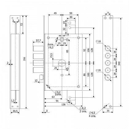 | Вылет ригелей | 37,7 мм |